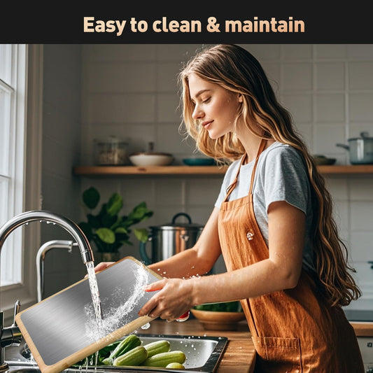 2 in 1 Double Sided Titanium Cutting Board & Bamboo Food Serving Charcuterie Cheese Board with Compartments, Stainless Steel Chopping Board Kitchen Serving Tray for Meat, Veggies,Snacks 13*10*0.8"