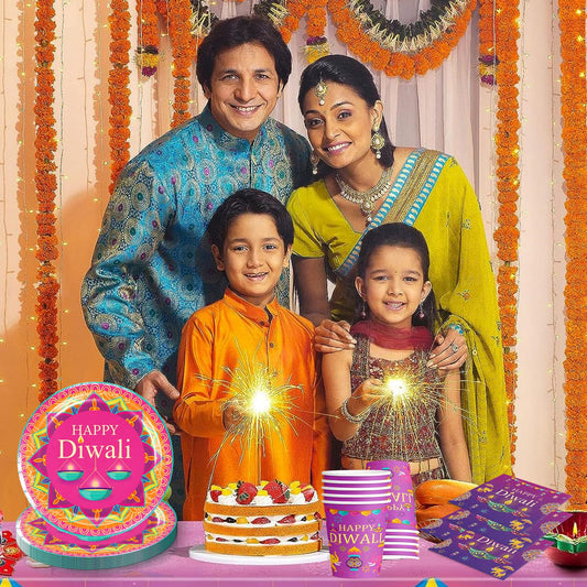 60Pcs Diwali Party Supplies,Happy Diwali Party Disposable Tableware Include Plates Cupsand Napkins Indian Festival of Lights Party Decorations(Serves 20)