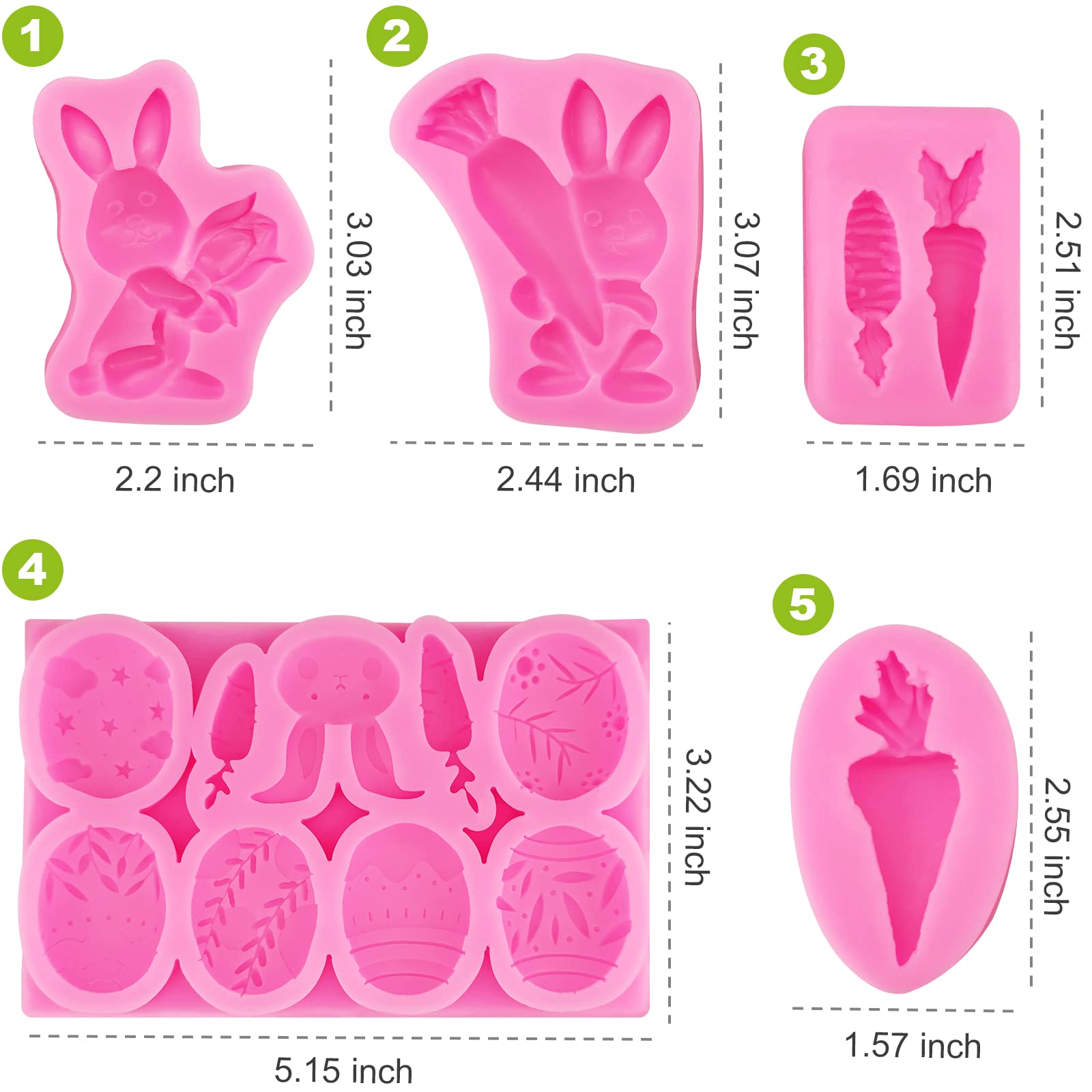 5Pcs Easter Fondant Molds Silicone Candy Molds Set Easter Egg Silicone Molds Bunny Silicone Chocolate Mold Carrot Shaped Molds for Cupcake Topper Chocolate Pastry,Cookie Jelly and Cake Decorations