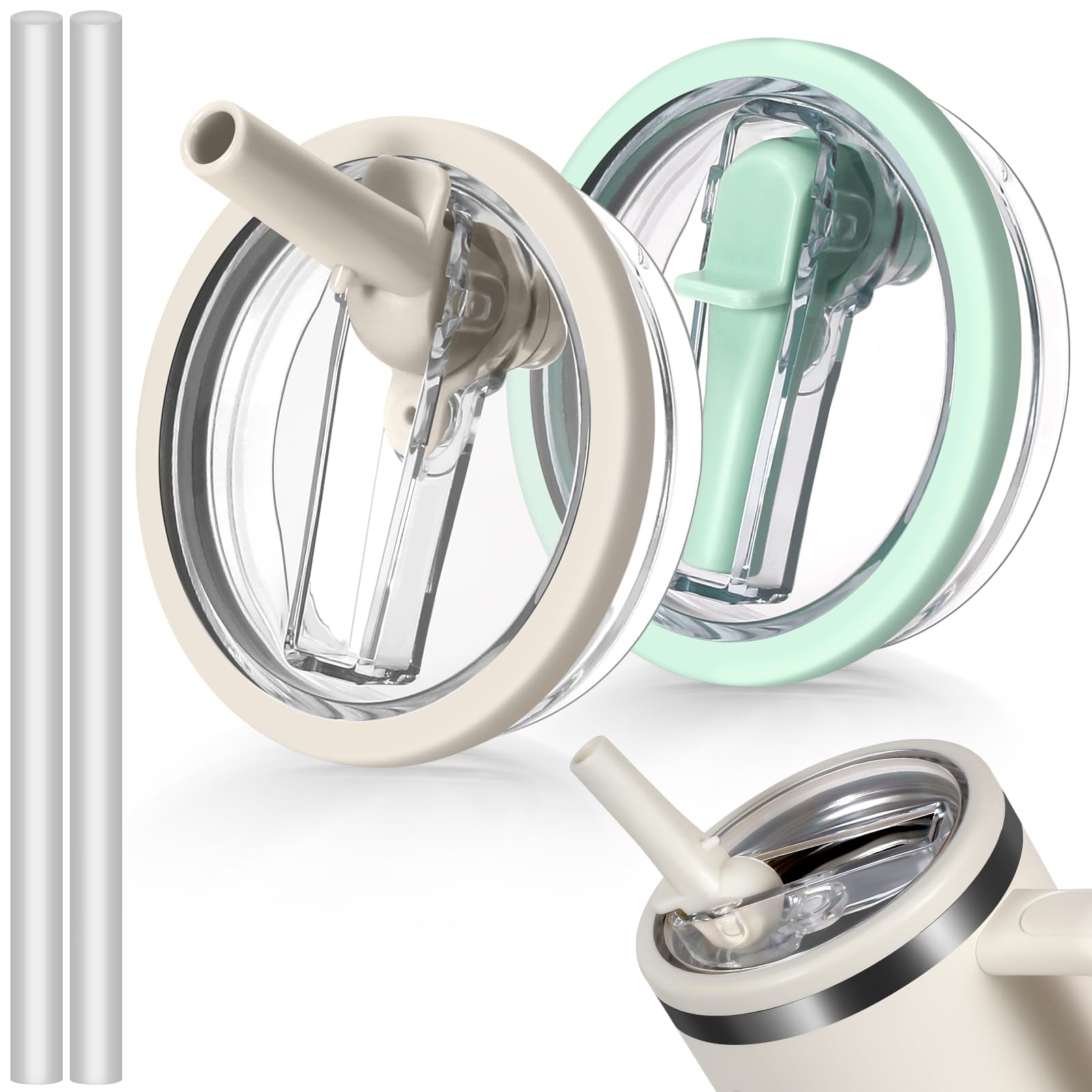 ANTAND 40oz Flip Straw Leak Proof Lid for Stanley H2.0 Quencher,2 Pack Tumbler Lid Replacement 40oz for Stanley Cup Accessories ProTour,No Spill Proof Straw Cover for Stanley Accessories(Beige,Matcha)