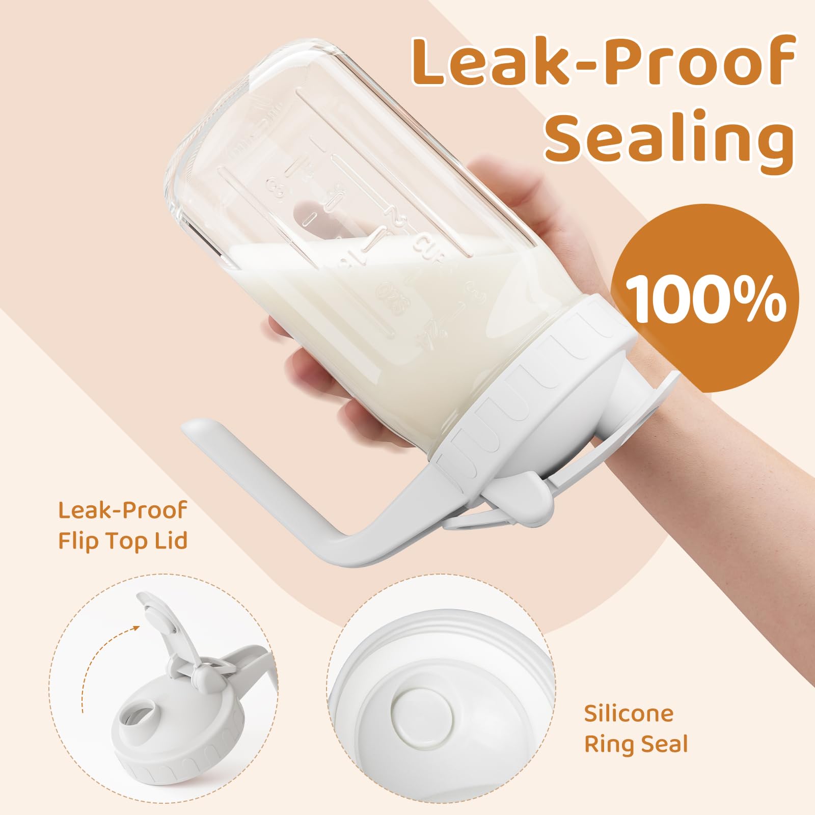 Breast Milk Pitcher, Mason Jar 32 oz, Heavy Duty Wide Mouth Jar with White Flip Cap Lid and Pour Spout, Airtight Seal for Freshness and Convenience, Formula Pitcher Great for Cold Beverages