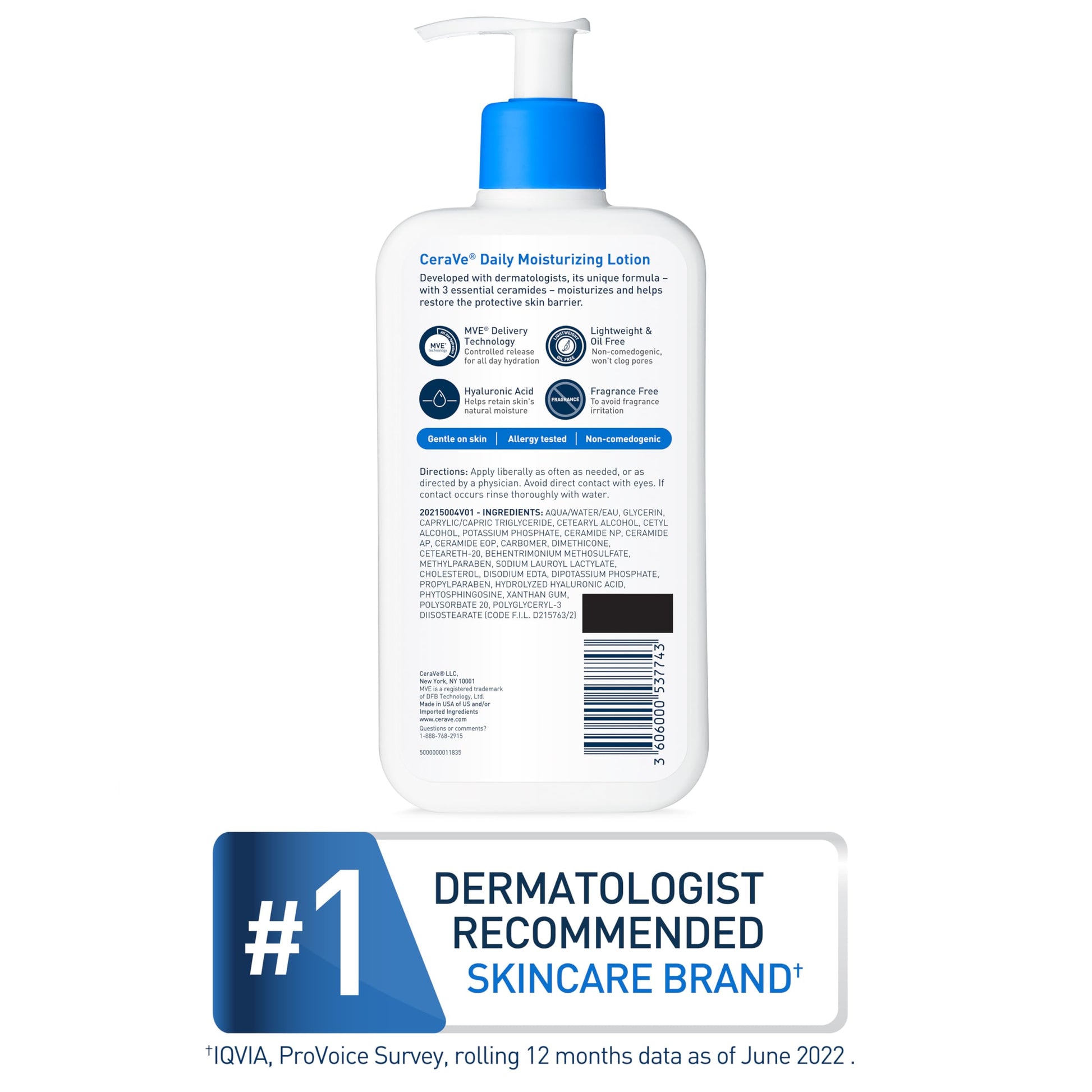 CeraVe Daily Moisturizing Lotion for Dry Skin, Body Lotion & Face Moisturizer with Hyaluronic Acid and Ceramides, Daily Moisturizer, Fragrance Free, Oil-Free, 12 Ounce