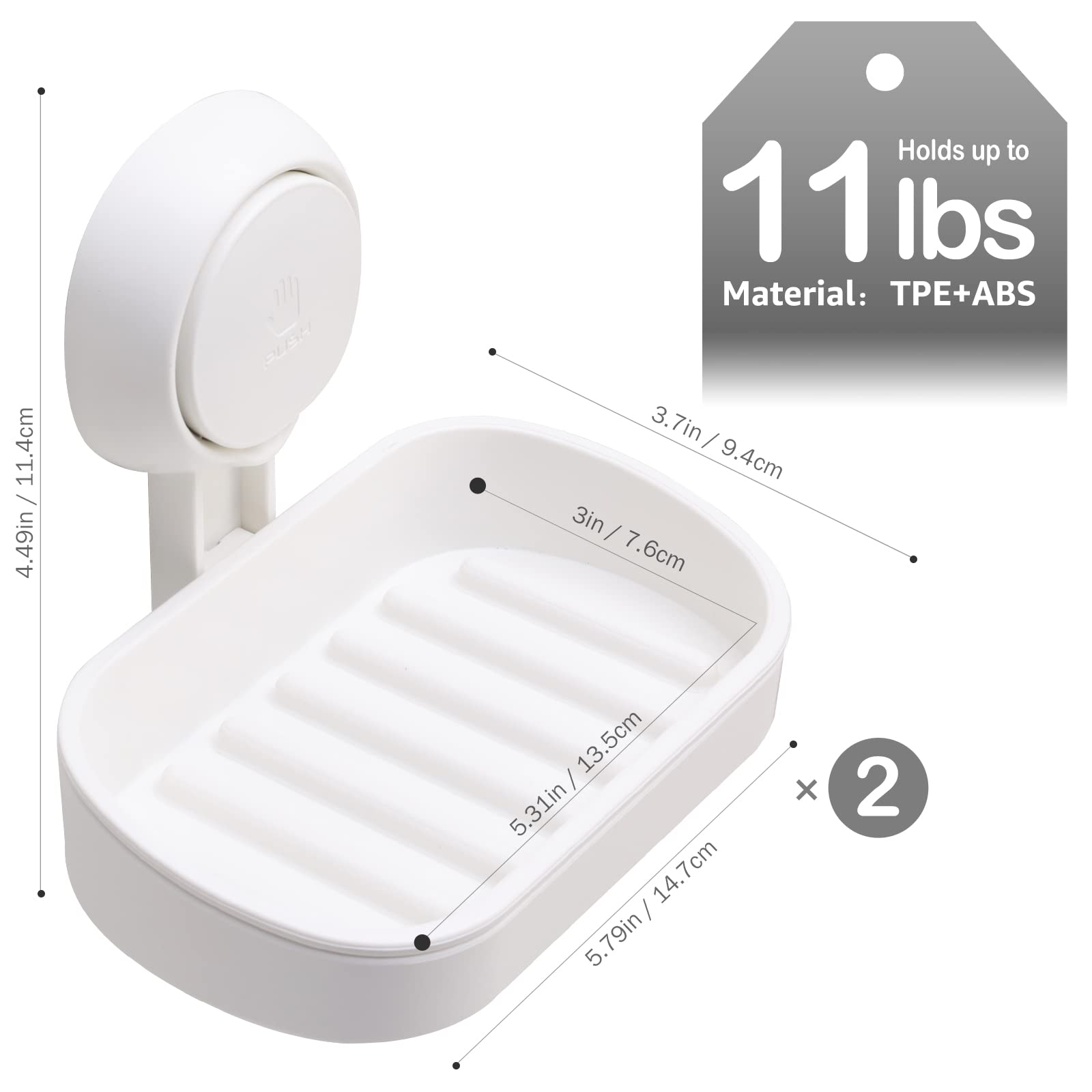 LEVERLOC Soap Holder Suction Cup for Shower, 2 Pack Bar Soap Dish Holder for Shower Wall Mounted NO-Drilling, Plastic Self Draining Removable Vacuum Suction for Bathroom Bathtub Sink