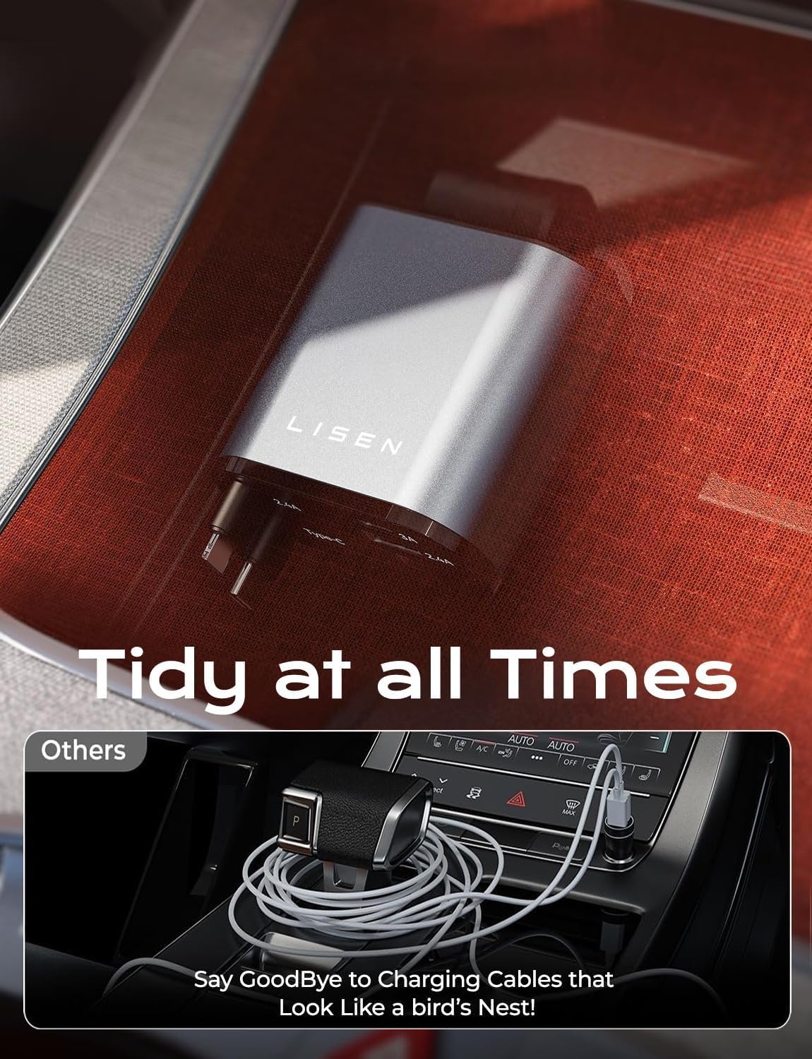 LISEN Retractable Car Charger [69W USB C Car Accessories Adapter ] for iPhone 16 USB C Charger Fast Charging, Travel Essentials Gifts for Women Men, Road Trip Essentials for iPhone 16e 16 15 14 13 12