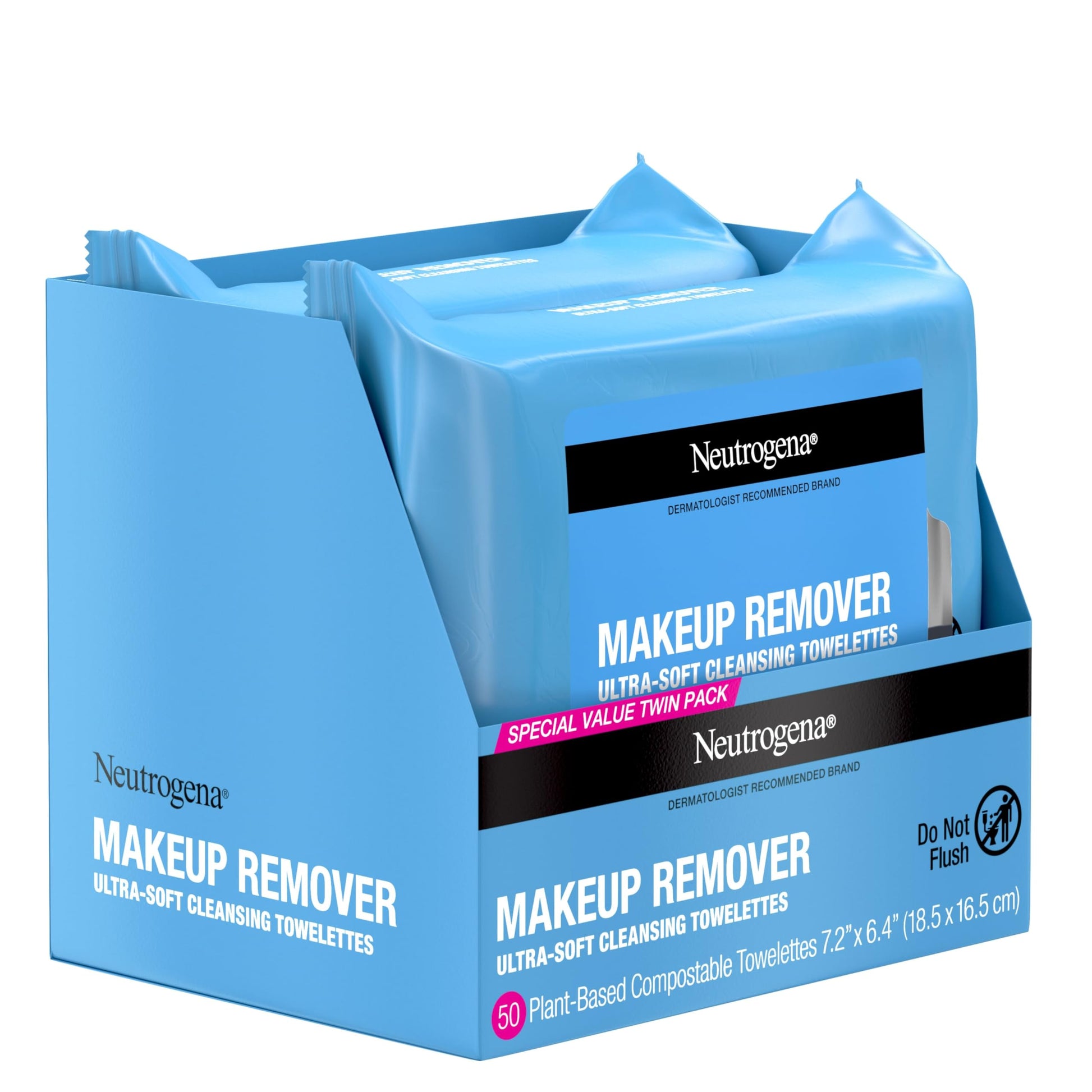 Neutrogena Makeup Remover Wipes, Daily Facial Cleanser Towelettes, Gently Cleanse and Remove Oil & Makeup, Alcohol-Free Makeup Wipes, 2 x 25 ct