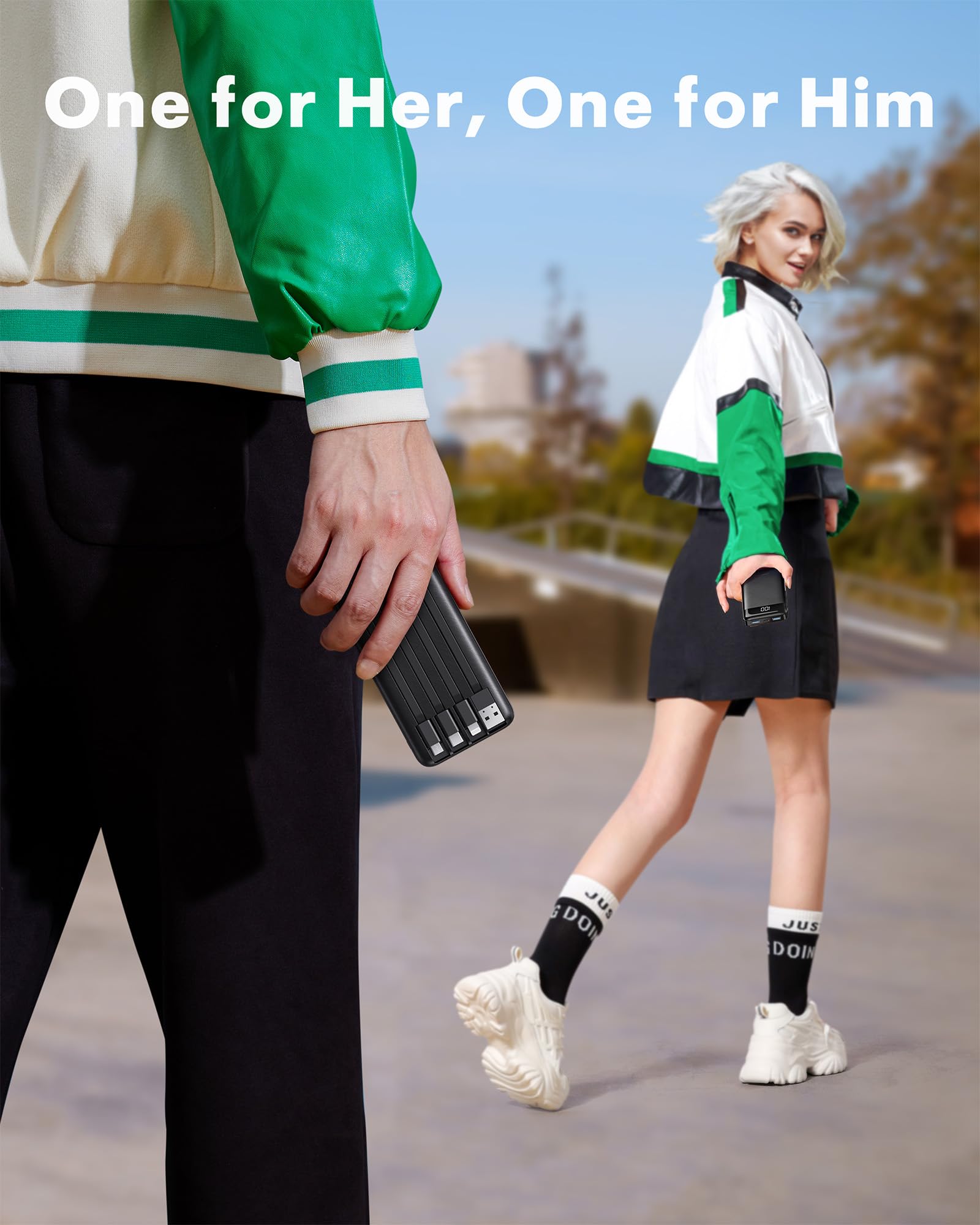 Portable Charger with Built in Cables, Portable Charger with Cords Wires Slim 10000mAh Travel Essentials Battery Pack 6 Outputs 3A High Speed Power Bank for iPhone Samsung Pixel LG Moto iPad