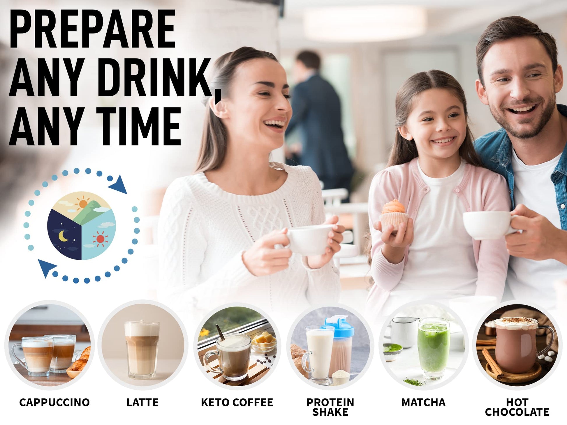 Zulay Kitchen Powerful Milk Frother Wand With 2 Duracell Batteries - Ultra Fast Handheld Drink Mixer - Electric Whisk Foam Maker for Coffee, Lattes, Cappuccino, Matcha, Hot Chocolate & Creamer - Black